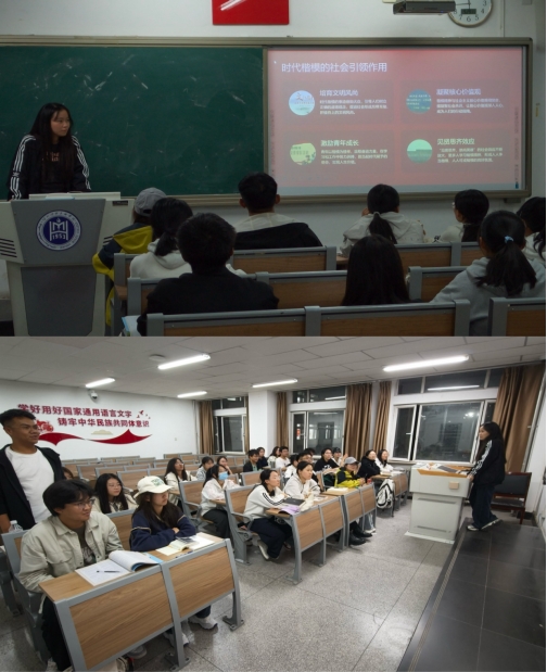 為弘揚時代楷模精神,加強學生思想道德建設,2025年10月14日, 法學院于尚智樓開展“精神火炬與時代力量”主題時代楷模典型事跡宣講活動,全體同學參與此次活動。