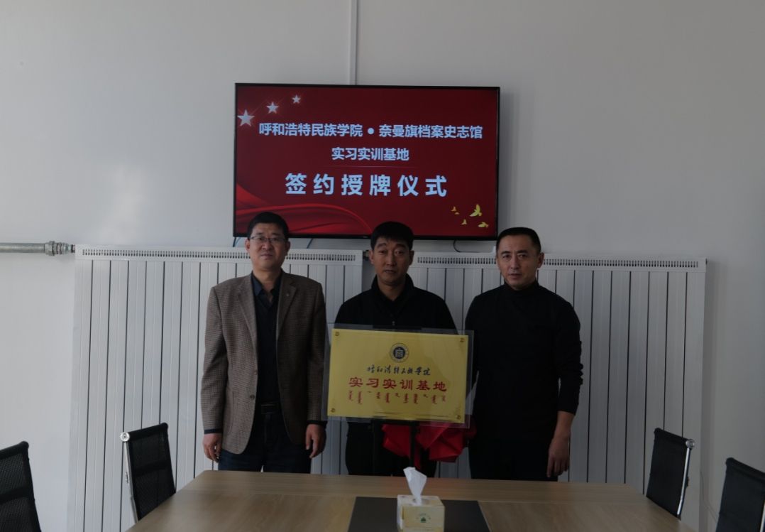 10月31日,在庫倫旗檔案史志館舉行實習實踐教學基地簽約儀式,庫倫旗檔案史志館館長于鳳來等相關人員參加。