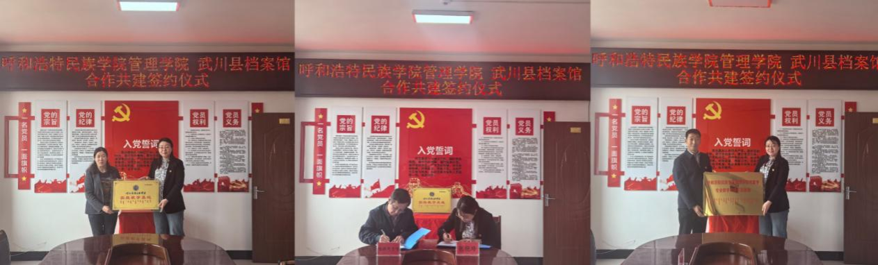 4月18日,管理學院與武川縣檔案館共建實踐教學基地簽約暨揭牌儀式在武川縣檔案館隆重舉行。