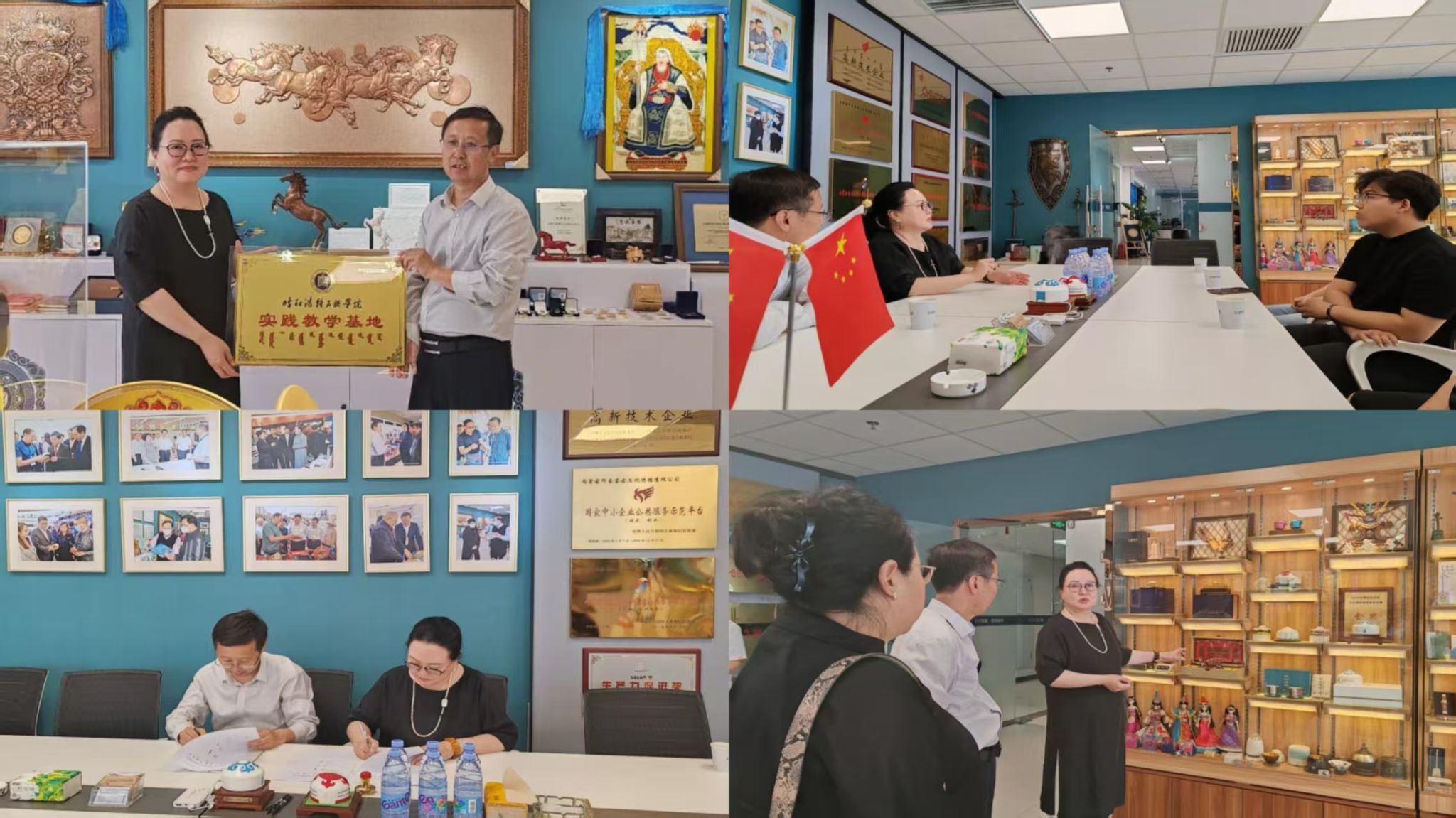 6月13日,管理學院哈斯同力嘎院長、教科辦主任阿斯曼老師以及四位學生代表,前往內蒙古印象蒙古文化傳播有限公司調研,簽署了實踐教學基地協議,并參觀了該公司的文創展廳。
