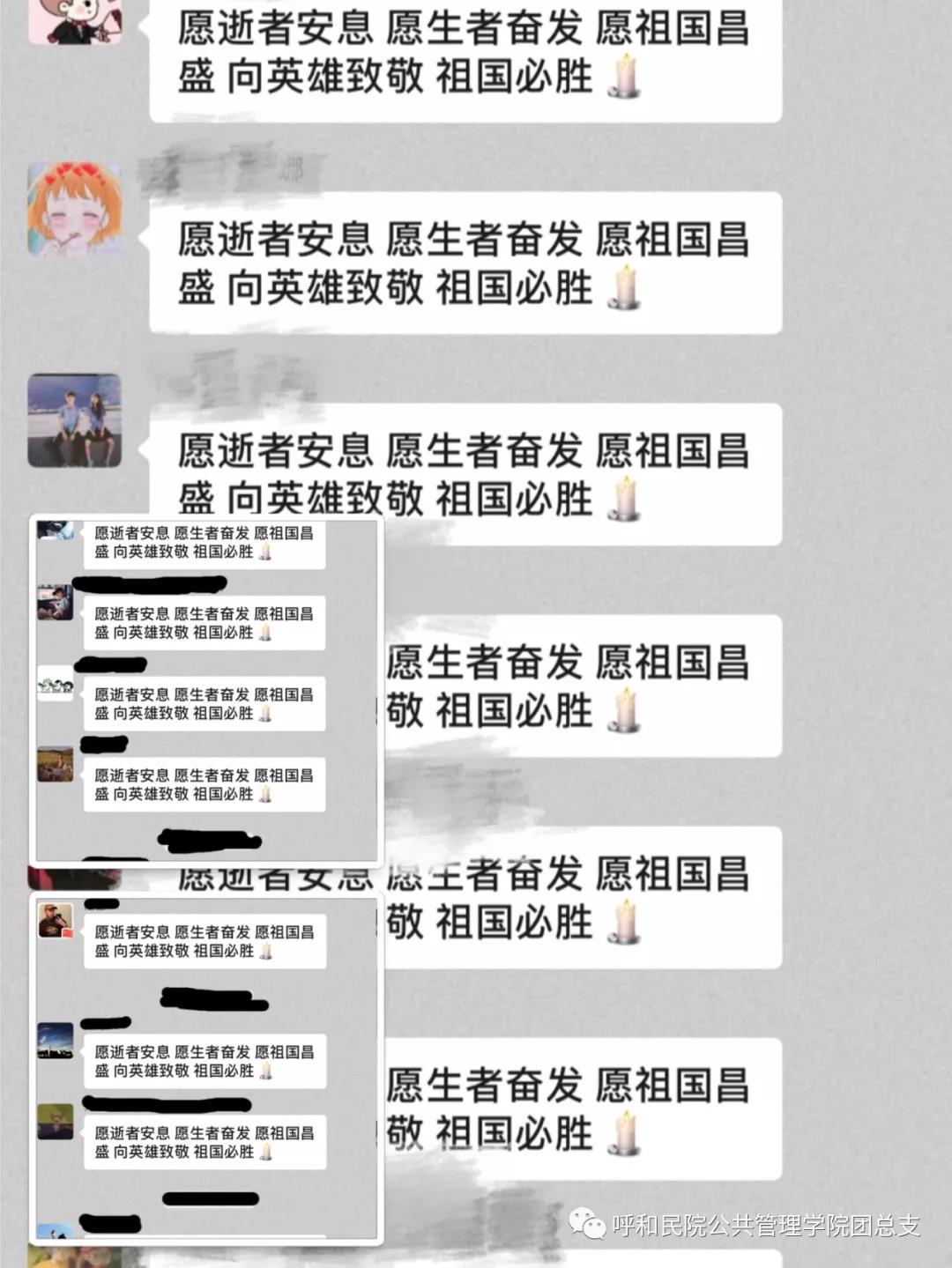 此外,學(xué)生還用微信群接力的方式紛紛在線上進(jìn)行留言,向因抗擊疫情而犧牲的英烈表達(dá)自己的哀思,并祝愿祖國繁榮昌盛!!!