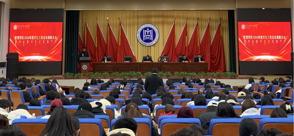為進一步激發學生的愛國熱情和學習動力,在全院形成比、學、趕、幫、超的良好氛圍,管理學院于12月20日在學術報告廳隆重舉行2024年度學生工作總結表彰大會。參會人員有管理學院班子成員、輔導員、2023、2024級各班、其他受表彰人員共370余人。
