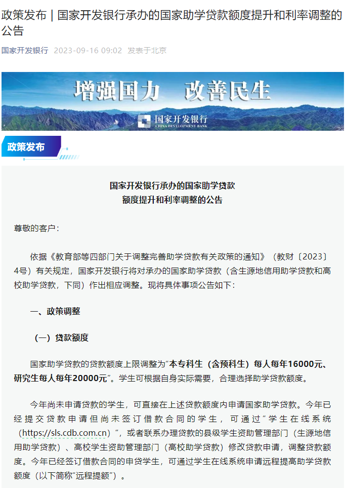 轉發《國家開發銀行承辦的國家助學貸款額度提升和利率調整的公告》