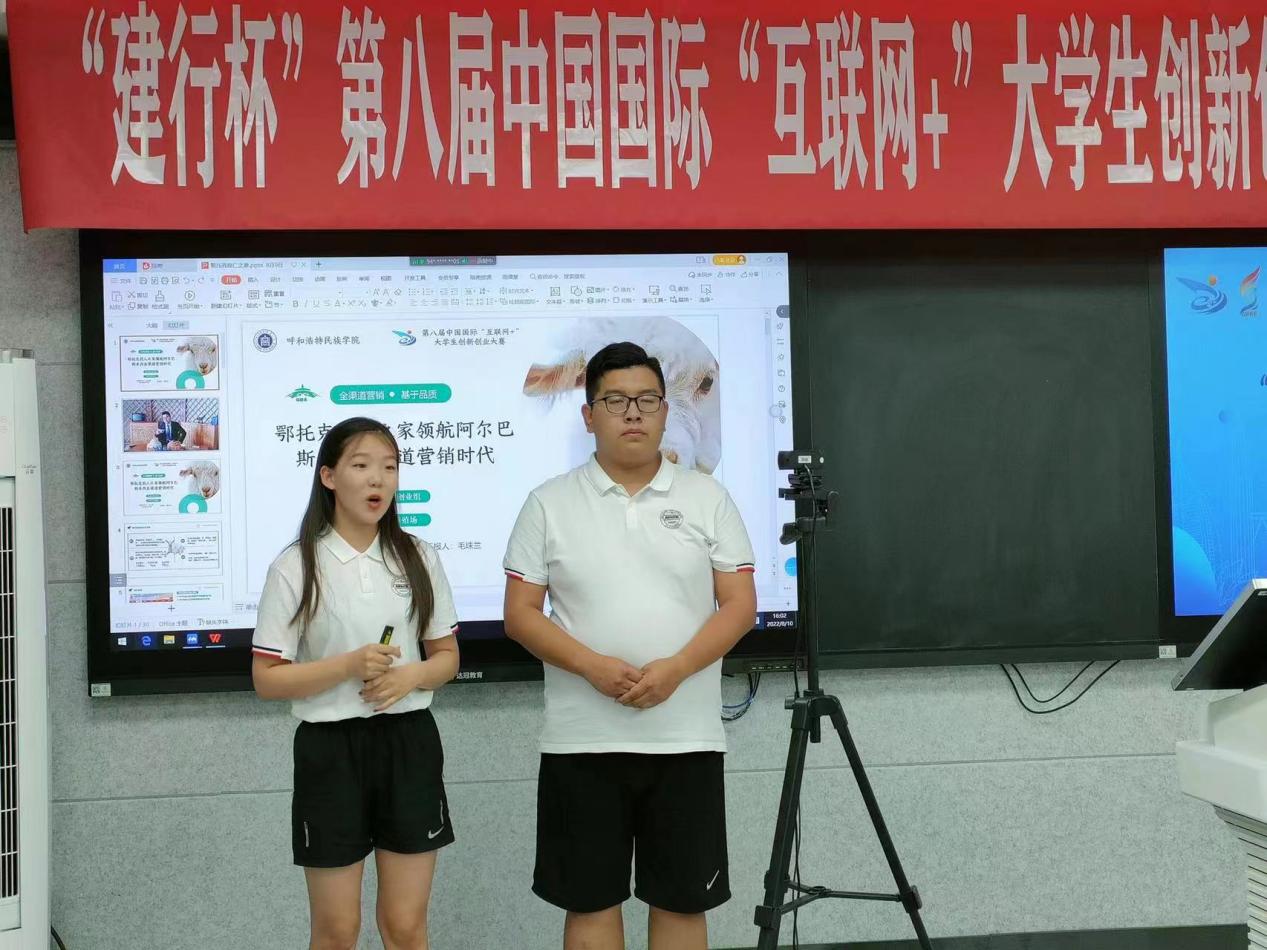 經(jīng)過層層選拔,公共管理學(xué)院2020級文秘班哈日貴同學(xué)負責(zé)的《鄂托克牧人之家領(lǐng)航阿爾巴斯羊肉全渠道營銷時代》項目選入第八屆內(nèi)蒙古自治區(qū)“互聯(lián)網(wǎng)+”大學(xué)生創(chuàng)新創(chuàng)業(yè)大賽暨第八屆中國國際“互聯(lián)網(wǎng)+”大學(xué)生創(chuàng)新創(chuàng)業(yè)大賽內(nèi)蒙古賽區(qū)選拔賽總決賽職教賽道現(xiàn)場比賽項目。在白根小為首的指導(dǎo)教師悉心帶領(lǐng)下項目團隊成員積極努力備賽,經(jīng)過激烈角逐,該項目獲得本次大賽銀獎。在現(xiàn)場比賽中,項目組成員充分展現(xiàn)了我院學(xué)子“我敢闖,我會創(chuàng)”的創(chuàng)新拼搏精神,彰顯了創(chuàng)新創(chuàng)業(yè)教育改革成果和產(chǎn)學(xué)研成果轉(zhuǎn)化的實質(zhì)成效。