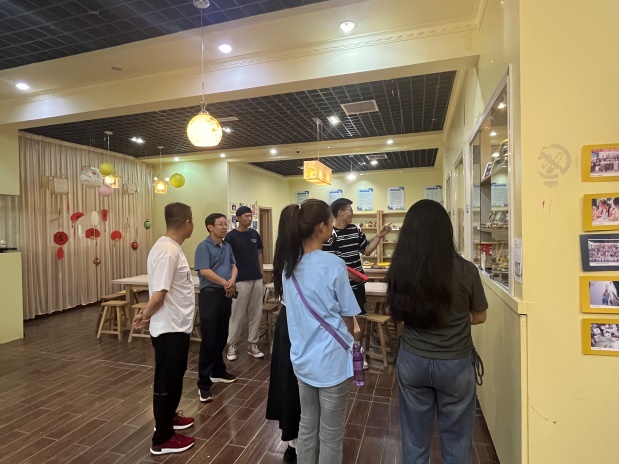 活動第二站到玉泉區大漠文創園的紅色搖籃工作室,工作室負責人額爾登老師的帶領下參觀學習了紅色文化長廊。“紅色搖籃工作室”是呼和浩特土默特學校退休教師額爾登老師創辦的,其宗旨是傳播紅色文化,弘揚紅色精神。其陳列、展覽的物件均為額爾登老師多年來收集的內蒙古地區關于紅色歷史的書籍、剪報、圖片、字畫等。