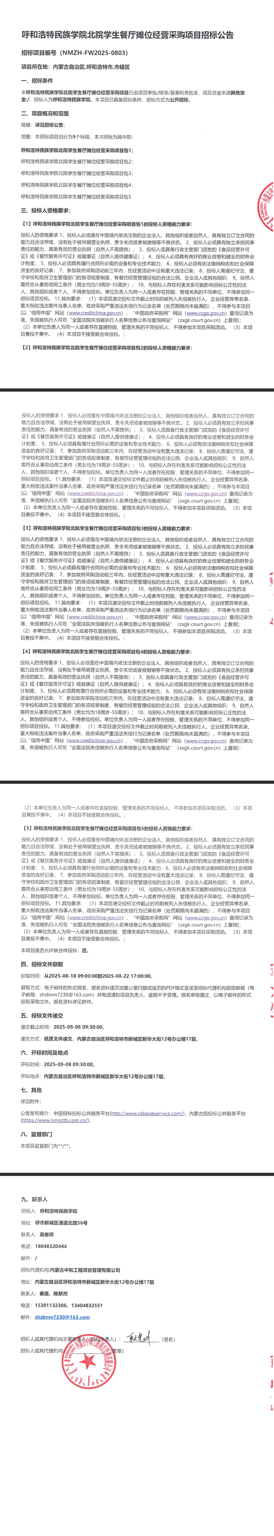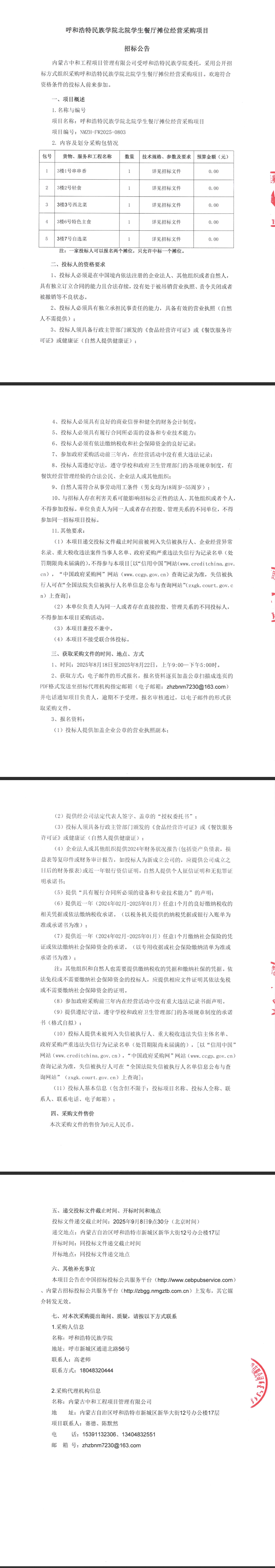 呼和浩特民族學(xué)院北院學(xué)生餐廳攤位經(jīng)營采購項目招標(biāo)公告