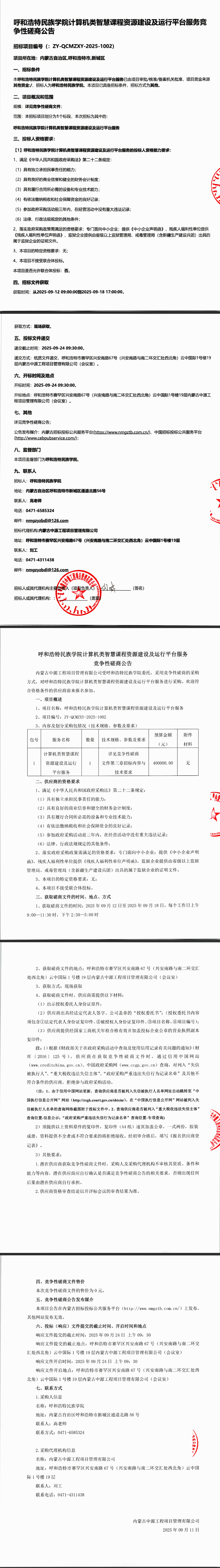 呼和浩特民族學院計算機類智慧課程資源建設及運行平臺服務競爭性磋商公告