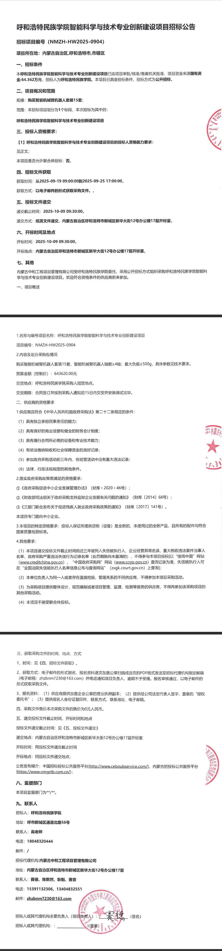 呼和浩特民族學院智能科學與技術專業(yè)創(chuàng)新建設項目招標公告