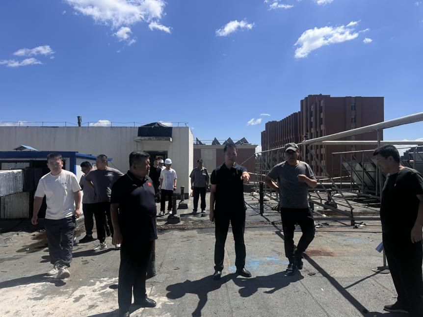 檢查組先后到9號學生公寓、6號學生公寓、音樂與舞蹈學院、辦公樓東側、南圖書館、北食堂、都林樓北側、綜合樓一層、鑄牢館2、4、5層等施工現場進行全面細致的安全隱患排查,聽取了相關負責人對項目實施和進展情況的匯報,重點了解了校內各項工程進度安排、安全生產防護措施落實、動火作業審批及施工人員日常管理等情況,明確了各施工現場安全員的職能職責,強調要時刻繃緊安全弦,持續完善安全管理制度,及時排查整改安全隱患問題,扎實做好施工現場安全防護;針對汛期強降雨導致的6號學生公寓頂樓屋頂漏雨情況,要求相關責任部門盡快維修處理,及時更換樓頂防水設施,防止雨水滲漏損壞學生財物,確保學生新學期返校正常住宿。同時,要求各單位切實扛起安全主體責任,確保責任到崗到人,扎實落實假期值班值守工作,持續強化校園重點區域、關鍵部位隱患自查、安全巡查,織密扎牢暑期校園安全防護網。