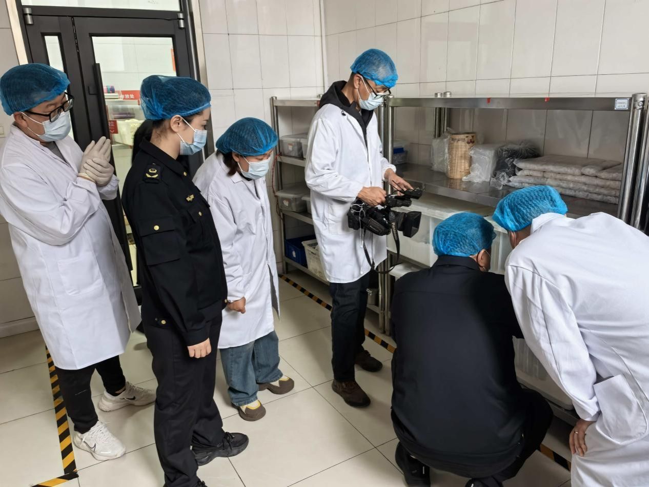 在檢查過程中,檢查人員手持記錄儀,直奔食堂操作間、食品庫房、餐具消毒間等關鍵區域,聚焦食品儲存環境是否達標、庫存食品保質期是否合規、餐具廚具清潔消毒是否徹底、食品留樣是否規范性等核心要點,逐項開展細致核查。同時,對食堂食品經營許可證、從業人員健康證等相關資質證明進行逐一核驗,確保每一道食品安全關口都牢固可靠,全力排查并消除潛在風險隱患。
