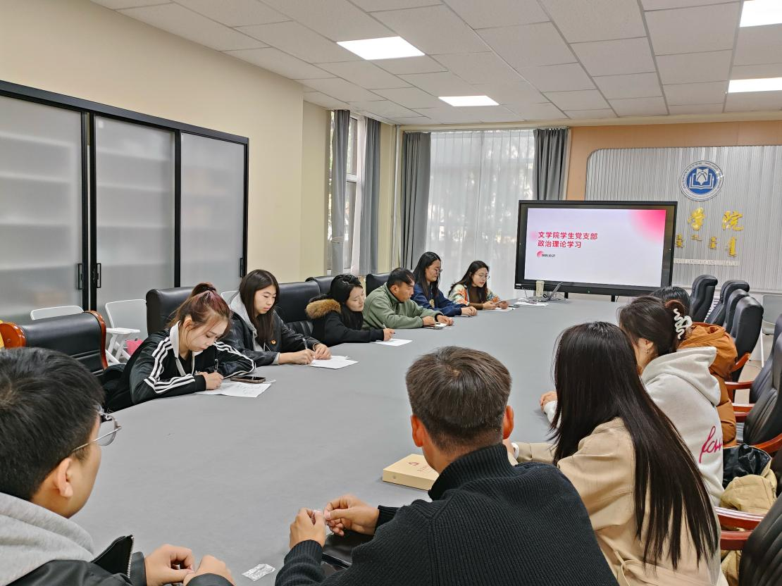 為深入學習貫徹黨的二十屆四中全會精神,2025年10 月27日下午3點,文學院學生支部20余名在校學生黨員在尚智樓109會議室開展專題學習會,學生支部書記劉曉主持會議。