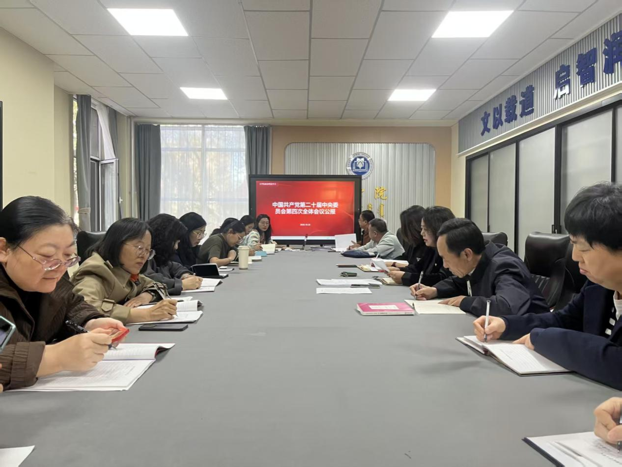 10月31日,文學院黨總支組織召開黨的二十屆四中全會精神專題學習會,全體教師參加學習。會議傳達學習了習近平總書記在黨的二十屆四中全會上的重要講話精神和全會審議通過的《中共中央關于制定國民經濟和社會發展第十五個五年規劃的建議》。
