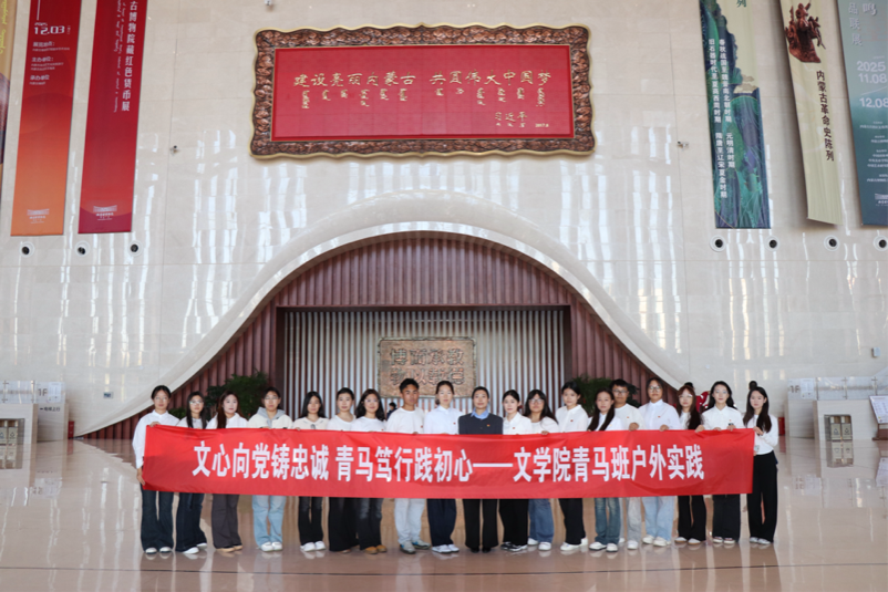 為扎實推進青年馬克思主義者培養工程,厚植青年學子家國情懷與文化自信,2025年11月14日,文學院青馬班以“文心向黨鑄忠誠 青馬篤行踐初心”為主題,在學院團總支書記劉曉的帶領下,21名青馬班學員赴內蒙古博物院開展戶外實踐學習。