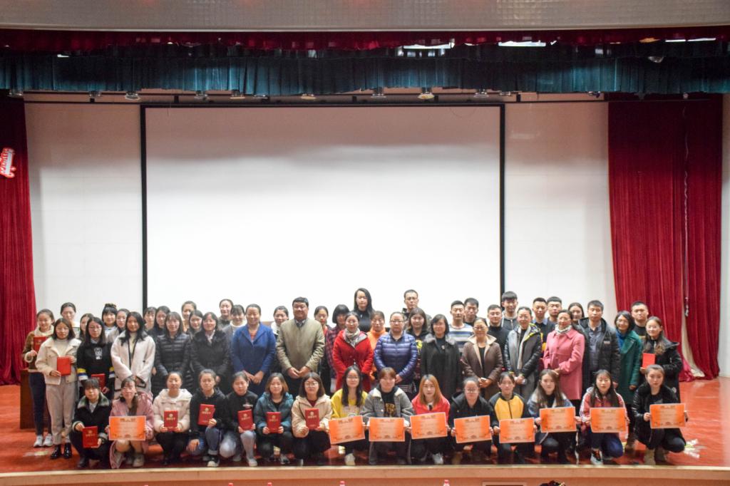 大會首先對4名教師技能大賽優秀指導老師、14名優秀帶隊老師、2017-2018年度獲得自治區級“三好學生”的6名同學、14名優秀實習生、13名優秀見習生、12個優秀宿舍、45名通過英語四級考試學生及3名通過六級考試的學生,10名優秀讀者學生進行表彰獎勵。隨后,漢語言文學系黨總支書記賽音圖、系主任崔鳳珍教授分別做了重要講話,希望受表彰的先進個人和先進集體要戒驕戒躁、再接再厲,以更高的標準嚴格要求自己,在學習和工作中切實發揮模范帶頭作用,在今后的學習和工作中取得更好的成績。全系同學們要以先進個人、先進模范為榜樣,努力學習、再創輝煌,為漢語言文學系的教育教學及各項工作再上新臺階,促進學校發展做出新的貢獻。