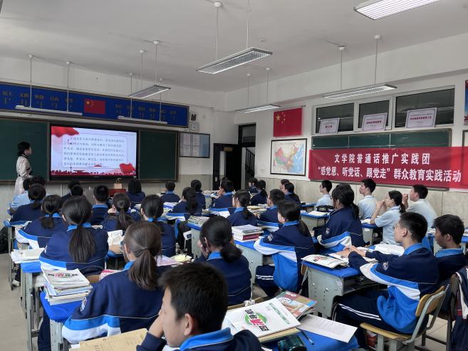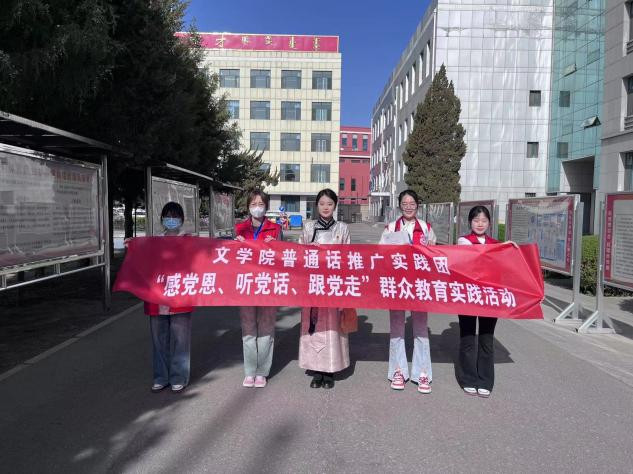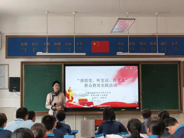 為將鑄牢中華民族共同體意識內化于心,外化于行,勉勵廣大青少年堅定不移聽黨話、跟黨走,4月12日上午文學院普通話推廣實踐團赴呼和浩特蒙古族學校開展“感黨恩,聽黨話,跟黨走”主題宣講活動。