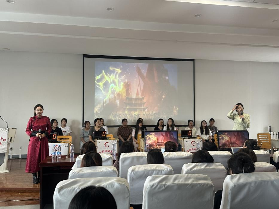 大賽伊始,文學院院長高娃發表致辭,她強調,本次漢字聽寫大賽不僅是對學生語文素養和書寫能力的一次檢驗,更是對漢字文化的一次宣傳和弘揚。她表示,漢字是中華文明的瑰寶,通過比賽,旨在促進漢字書寫水平的提高,加深全體師生對漢字的理解和熱愛。她鼓勵參賽選手以飽滿的熱情和嚴謹的態度展現自己的才能,并期待全體師生在感悟漢字深厚底蘊的同時,全面提高規范漢字運用能力。隨后,學院北疆“小紅馬”大學生宣講團成員帶來的《木蘭辭》詩詞朗誦將現場氛圍推向高潮。