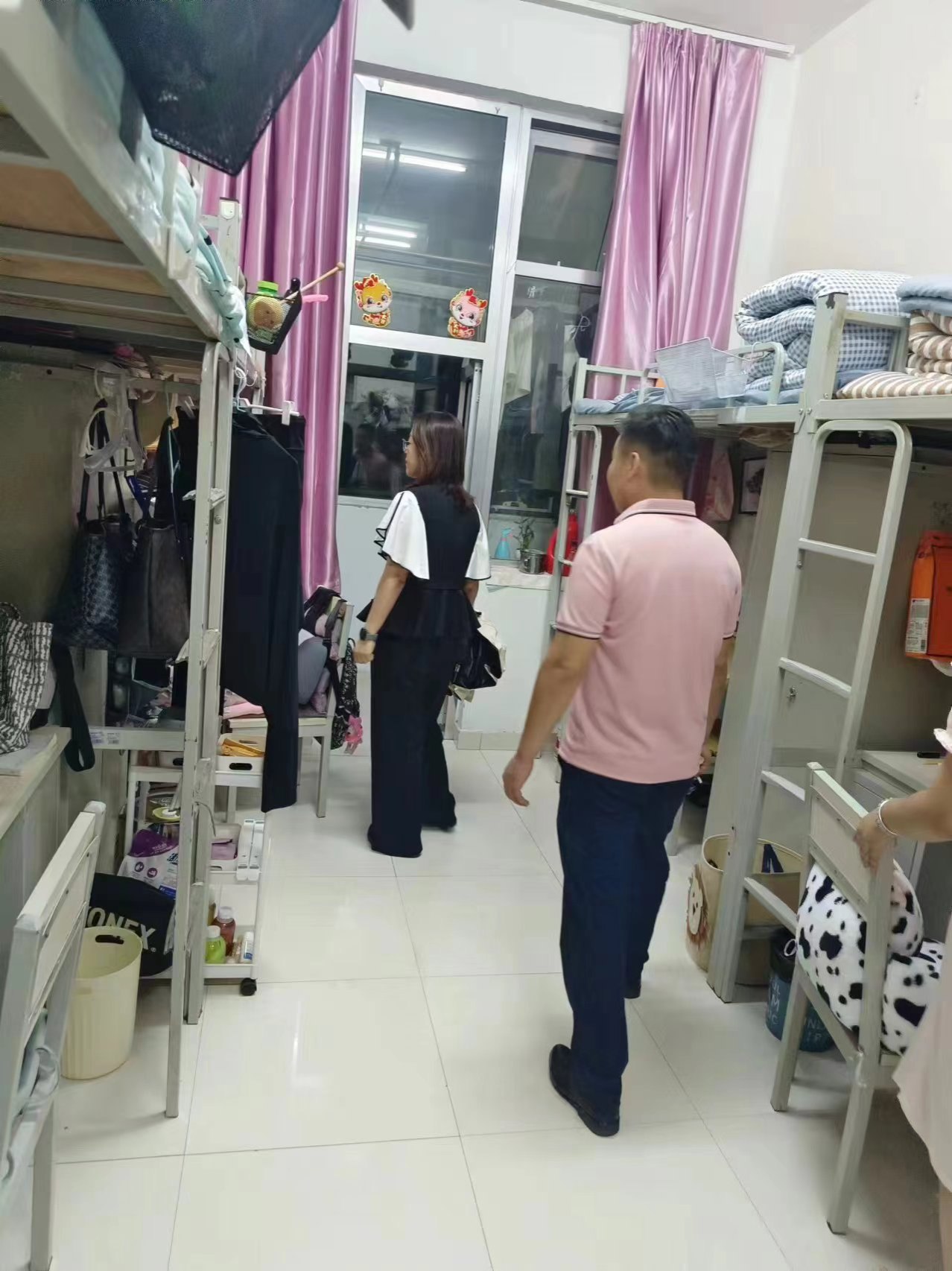 老師們逐一走訪宿舍樓,檢查學生的住宿情況。主要關注點包括:是否有學生擅自外出或留宿他人,以及宿舍門是否鎖好,窗戶是否關閉,確保學生的人身安全。經查看,存在部分同學因參加了專升本預科班、考研預科班等原因暫不在校的情況。此外,老師們還留意宿舍內的氛圍,通過與學生的簡短交流,了解他們的心理狀態,提供必要的關懷與指導,努力營造和諧的宿舍氛圍。