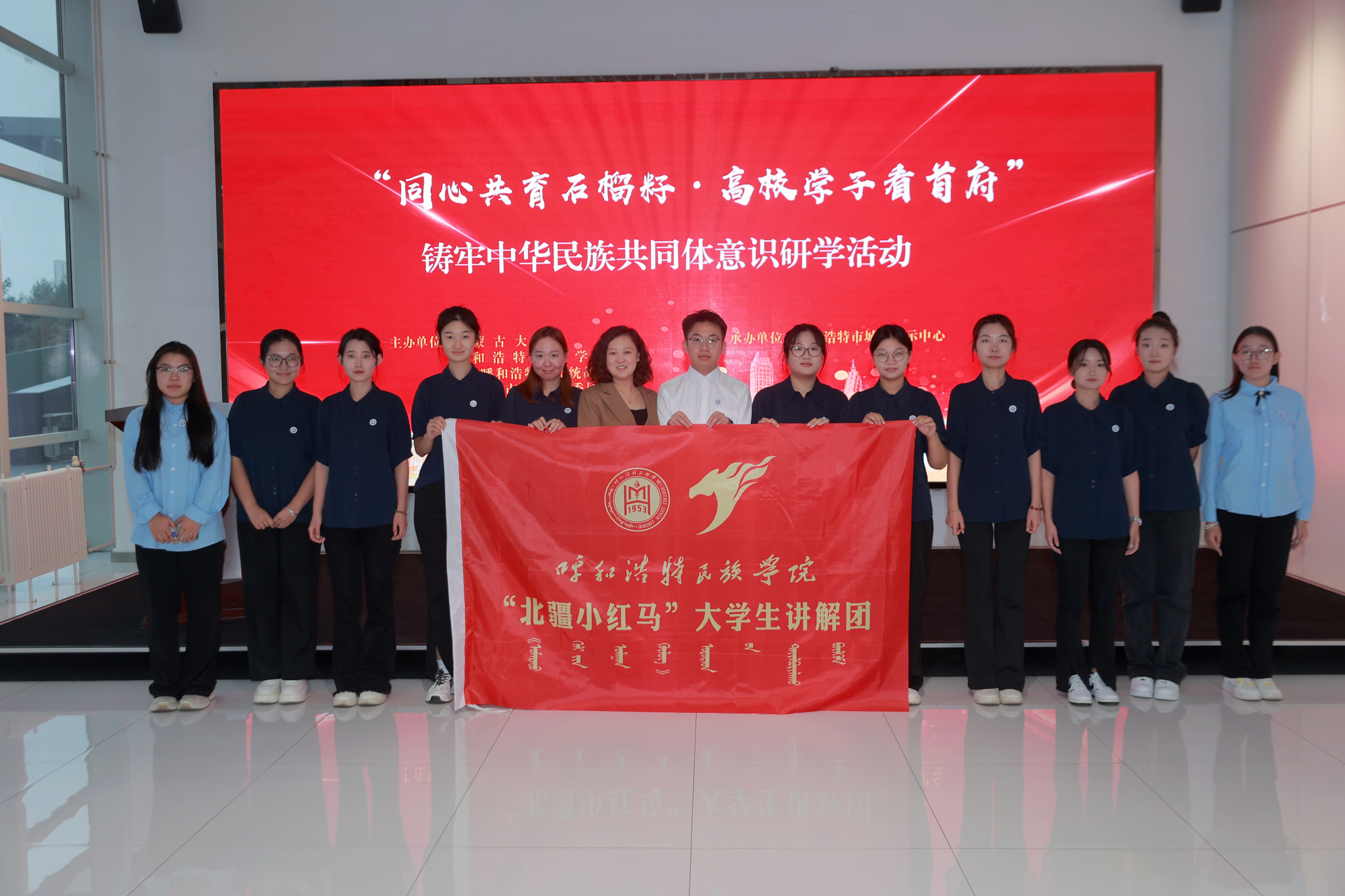 “北疆小紅馬”大學生講解團參觀內(nèi)蒙古展覽館合影