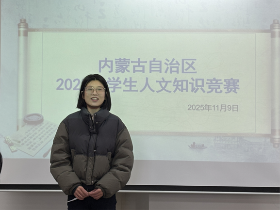 2025年11月9日,內蒙古自治區大學生人文知識競賽校級選拔賽在尚智樓順利舉行。本次競賽由教務處主辦、文學院承辦,吸引了75名各學院學子同臺競技。比賽面試環節采用“即興演講”的形式,選手在一分半鐘內完成主題構思與演講呈現,既考驗人文知識積累與語言表達能力,又注重臨場應變潛力。經過激烈角逐,最終邊文卓、王馨蕊、張娜斬獲一等獎;劉庭煒、宋魯豫、袁靜慧、趙今儀、王淑媛榮獲二等獎;張欣然、曹凱威、哈林、劉天維、薜茹亮、張慧紫、馬明輝獲得三等獎,15位同學將代表學校參加自治區決賽。