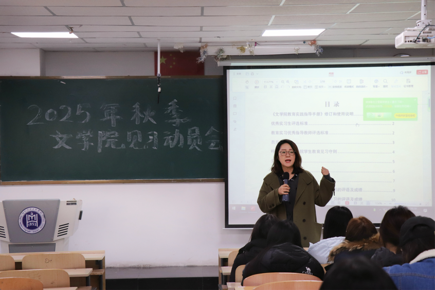 為了保障2025年秋季見習工作有序開展,幫助2024級見習生明確見習要求、規范見習流程、提升見習質量,11月13日下午四時,文學院在尚智樓214教室召開2025年秋季見習動員會,2024級全體見習生參加了本次會議。