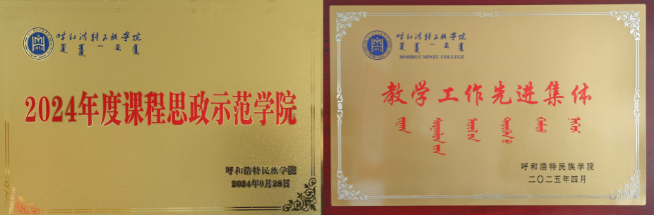 2024年,完成了自治區級一流課程《常微分方程及其應用》的“知識圖譜”制作工作,學院被評為校級課程思政示范學院、教學工作先進集體,建設《數學分析》《概率論與數理統》等校級課程思政示范課程。額爾敦布和教授在《中國教育報》發表署名文章《打造創新融合課程,提高人才培養質量》、在《光明日報》刊發署名文章《為加快發展新質生產力貢獻高校力量》。