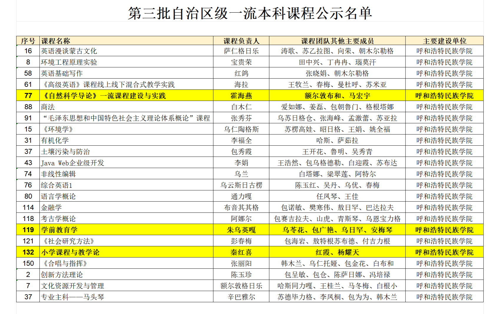 建設(shè)國家級(jí)一流課程《小學(xué)教育學(xué)》及自治區(qū)級(jí)一流課程《小學(xué)課程與教學(xué)論》《教育學(xué)原理》《自然科學(xué)導(dǎo)論》《學(xué)前教育學(xué)》等5門精品課程。形成基礎(chǔ)理論+實(shí)踐能力+創(chuàng)新素養(yǎng)的課程群體系,為邊疆地區(qū)基礎(chǔ)教育人才培養(yǎng)提供核心支撐。