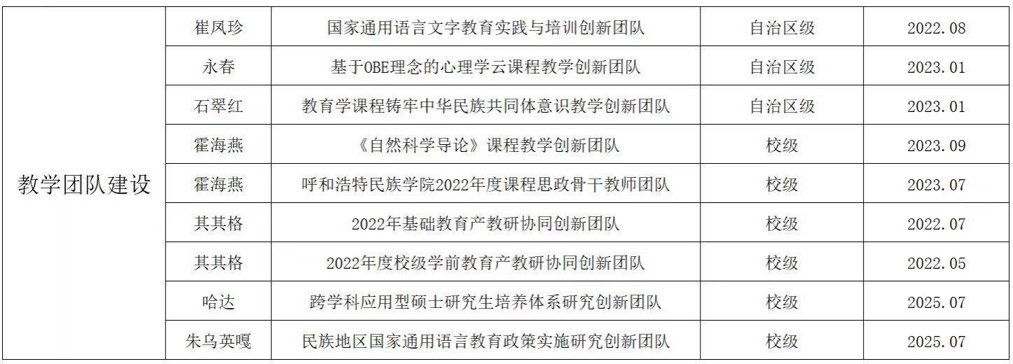 2019年教育學(xué)一級(jí)學(xué)科獲批國家民委重點(diǎn)建設(shè)學(xué)科;2020年小學(xué)教育專業(yè)獲批自治區(qū)級(jí)一流本科專業(yè);2022年學(xué)前教育專業(yè)獲批國家級(jí)一流本科專業(yè)建設(shè)點(diǎn);2024年獲批教育碩士點(diǎn)建設(shè)單位;2025年獲批1門國家級(jí)一流課程和2門自治區(qū)一流課程;