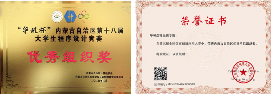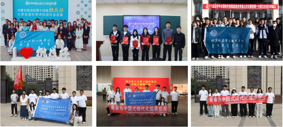 打造“學科競賽+社團活動+社會實踐”三位一體育人體系,全面提升學生綜合素養與專業競爭力。依托“程序開發社團”“智維·計算機技術社團”,形成200余人核心群體,年均開展編程培訓、創新創業實訓等活動20余場,2022年以來承辦華為ICT大賽、“藍橋杯”等高水平賽事10次,學生累計斬獲國家級、省部級獎項112項。以“實踐育人”為導向,組織多樣化社會實踐活動,2025年暑期“三下鄉”團隊赴赤峰開展社區服務與紅山文化研學,實現服務社會與文化認知雙向賦能;推動“返家鄉”實踐,學生在政府、法院、科技館等崗位歷練,將專業知識融入基層服務,錘煉實操能力與社會責任感,達成價值塑造與能力提升的有機統一。