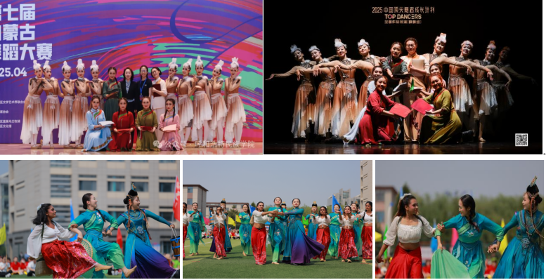 實踐教學是提升能力、傳承藝術、對接需求的核心路徑。學院開設《舞臺實踐》等課程,高強度排練提升舞臺表現力,依托實踐與校企合作推進成果轉化,定期舉辦匯報演出,組織烏蘭牧騎社區演出。拓展校外平臺,與多家機構共建實習基地,邀請演員指導,延聘專家訓練。創新“教學—科研—創作—表演一體化”模式融入課堂。原創《春歸》獲舞蹈大賽雙項二等獎,躋身頂尖舞者計劃并亮相展演;《馬蹄飛揚》《金秋草原》獲藝術展演一等獎。