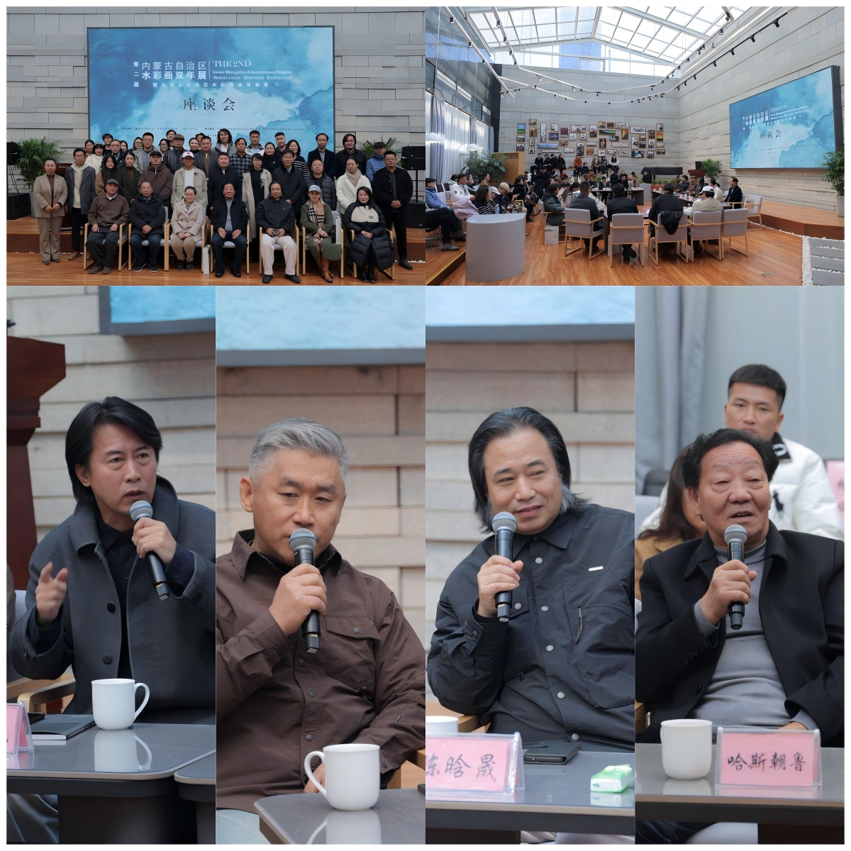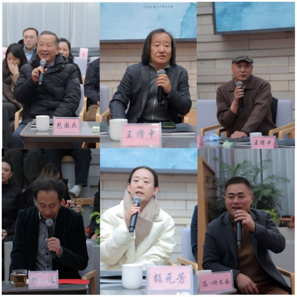 開幕式結(jié)束后,內(nèi)蒙古水彩畫高等教育座談會(huì)正式舉行。座談會(huì)匯聚了內(nèi)蒙古美術(shù)家協(xié)會(huì)主席董從民教授,內(nèi)蒙古師范大學(xué)美術(shù)學(xué)院黨委書記、博士生導(dǎo)師王耀中教授以及我校美術(shù)系創(chuàng)立者、資深專家哈斯朝魯教授等20余位區(qū)內(nèi)水彩畫領(lǐng)域的頂尖專家與學(xué)者。座談會(huì)由我校美術(shù)與設(shè)計(jì)學(xué)院副院長(zhǎng)塔娜主持。