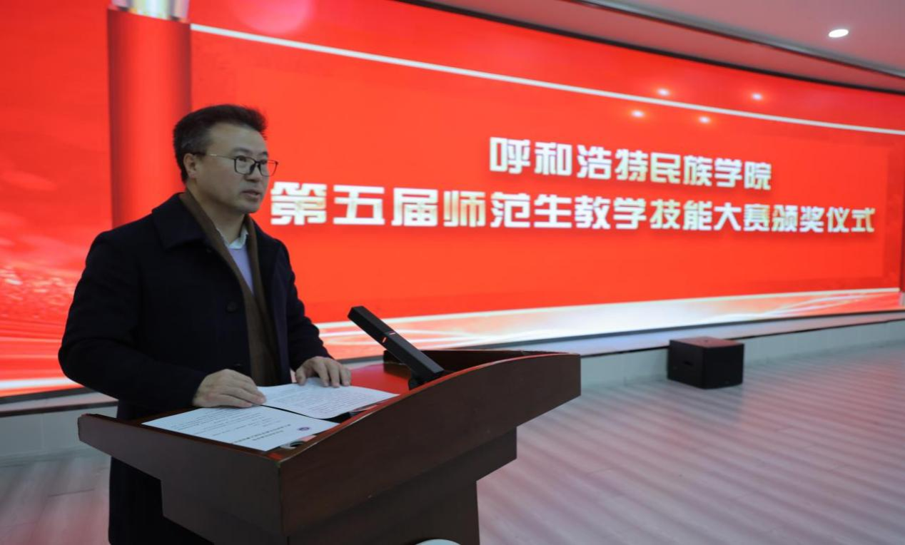 11月25日,學校第五屆師范生教學技能大賽頒獎儀式在鑄牢中華民族共同體意識教育館一樓報告廳舉行。本屆大賽由師范生技能訓練中心主辦,教育學院承辦,大賽以“以賽促訓、以訓強能”為宗旨。校黨委委員、副校長額爾敦布和出席并講話,教務處、師范生技能訓練中心、賽事評委組成員、師范生培養相關學院負責人以及師生代表參加,頒獎儀式由教育學院副院長朱烏英嘎主持。