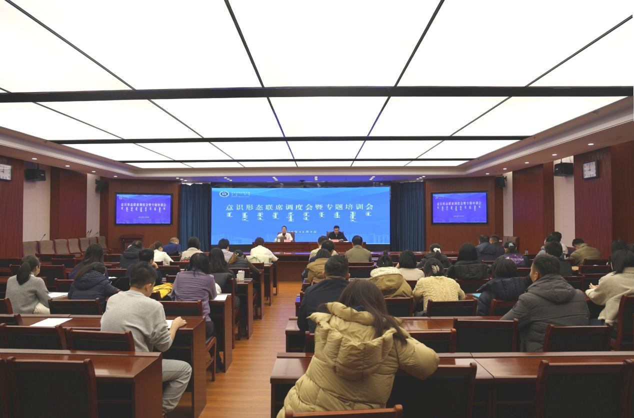 為深入學習貫徹落實習近平總書記關于意識形態工作和網絡強國的重要論述,進一步加強思想政治工作隊伍建設,12月3日,學校舉辦意識形態聯席調度會暨專題培訓會,邀請意識形態領域專家作專題培訓。校黨委委員、宣傳部部長張海峰主持會議。各學院黨總支副書記及輔導員、宣傳員、班主任代表和宣傳部全體人員參加會議。