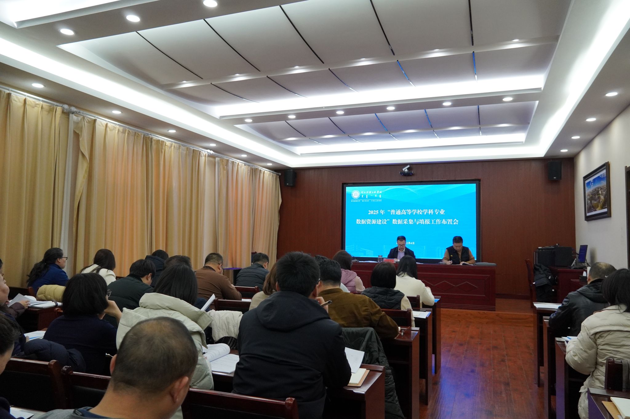 12月4日,學校在辦公樓四樓會議室召開了2025年“普通高等學校學科專業數據資源建設”數據采集與填報工作布置會。會議由校黨委委員、副校長額爾敦布和主持。