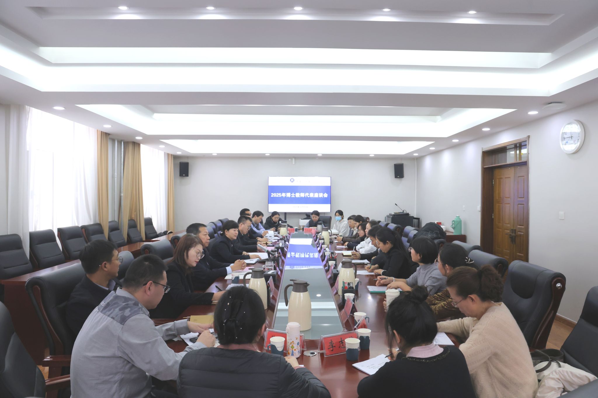 黨政辦公室、發展規劃處、人事處、教務處、科研處等職能部門負責人及16名博士教師代表參會。