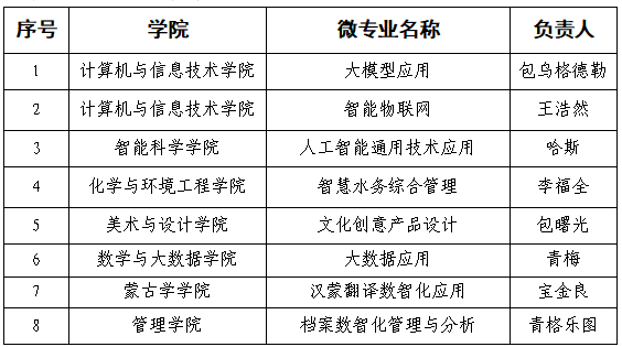 呼和浩特民族學(xué)院2025年微專業(yè)立項建設(shè)名單