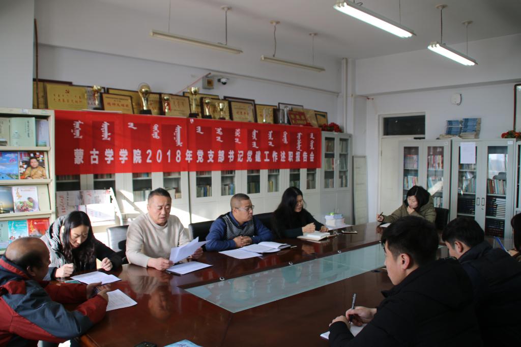 12月17日,蒙古學學院黨總支在都林樓408資料室召開支部書記述職評議會,會議由學院黨總支書記周雙喜主持,總支委員及各支部書記、支委委員,師生黨員代表等參加會議。