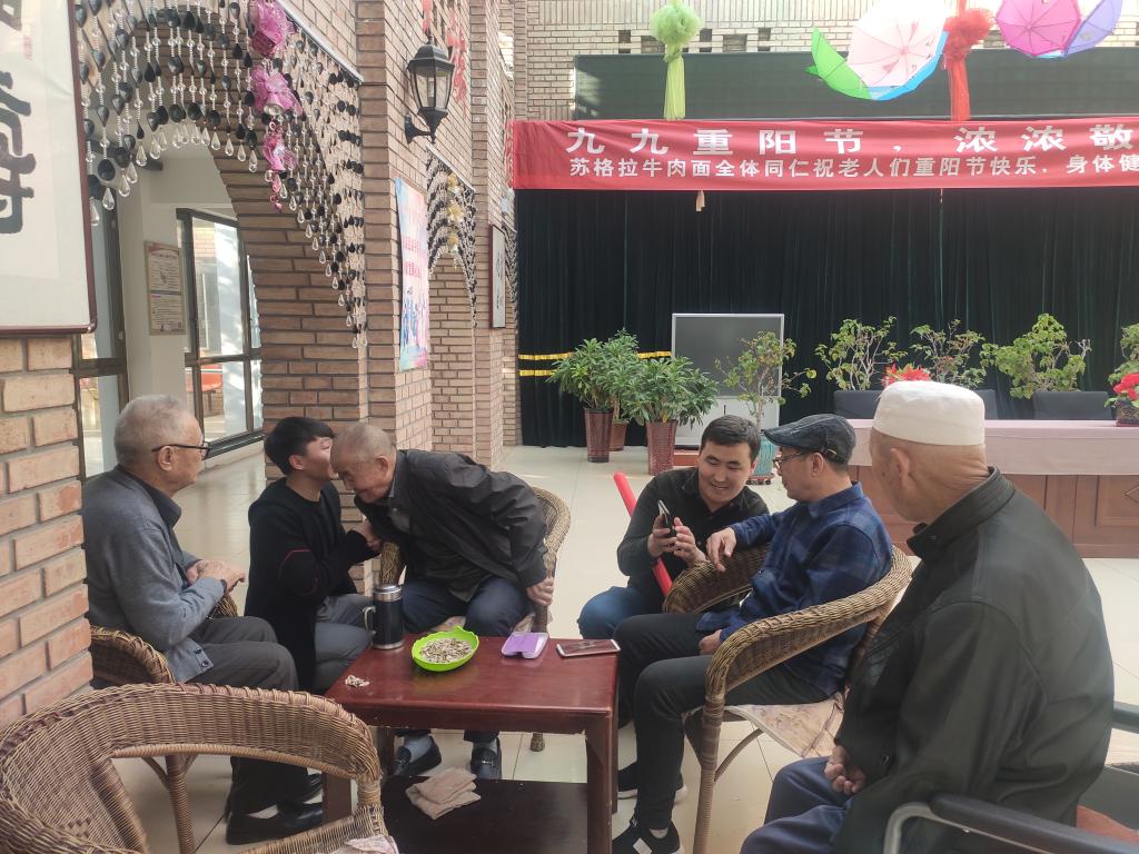 呼和浩特市穆斯林老年公寓是回民區人民政府建設的內蒙古地區首家信仰伊斯蘭教少數民族老年養老機構。老師和同學們的到來受到了老人們的熱烈歡迎,黨員同學們到達穆斯林老年公寓后,先為老人們的居所進行簡單整理和衛生清掃,大家不怕臟累盡己所能。接著,大家圍坐在孤寡老人們跟前,與他們開懷暢談,聽老人講述自己的經歷和故事,同學們也為老人們介紹外面的世界和自己的校園生活,人群中時不時傳來歡聲笑語。臨別時,大家都依依不舍,老人們鼓勵同學們努力學習,報效祖國。