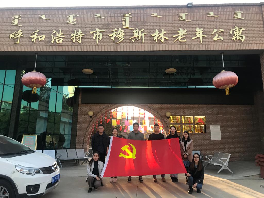 為更好的踐行“不忘初心、牢記使命”主題教育,通過開展志愿活動的方式,強化黨員學生為民服務、奉獻社會的責任感,10月21日下午,蒙古學學院與新聞傳媒學院學生黨支部前往呼和浩特市穆斯林老年公寓開展了“不忘初心、牢記使命”主題教育志愿服務活動。蒙古學學院、新聞傳媒學院學生黨支部書記根領、白淑華帶隊,支部全體黨員同學參加了活動。