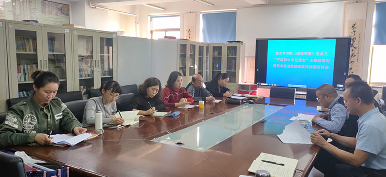 學(xué) 10月31日,蒙古學(xué)學(xué)院(翻譯學(xué)學(xué)院)領(lǐng)導(dǎo)班子圍繞“對(duì)照黨章黨規(guī)找差距”主題開展專題集中學(xué)習(xí)研討。學(xué)校主題教育第三指導(dǎo)組副組長(zhǎng)紅梅到場(chǎng)指導(dǎo),學(xué)院領(lǐng)導(dǎo)班子成員及教師黨員參加學(xué)習(xí)并作交流發(fā)言。會(huì)議由院黨總支書記周雙喜主持。