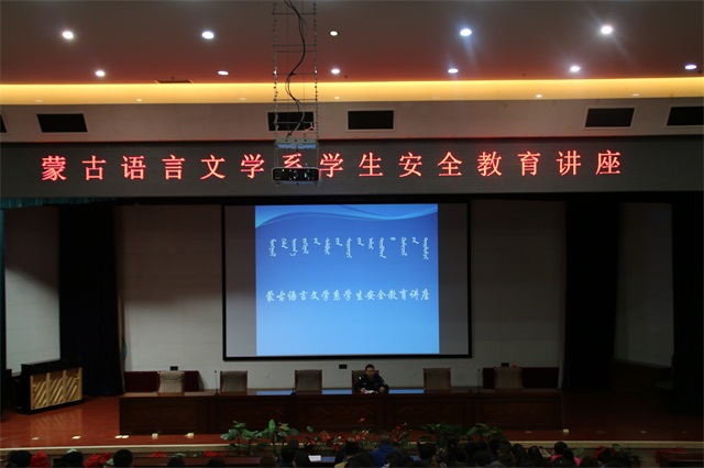 4月14日晚,蒙古語言文學系邀請保衛處政??瓶崎L郭明君老師在圖書館二樓報告廳作安全教育主題講座。蒙文系黨總支書周雙喜、副書記白東升、各班輔導員、班主任及全系500多名學生參加。郭老師結合實際案例,圍繞“交通安全”、“網絡安全”、“防盜防詐騙”、“人身安全”和“提高消防意識”等內容,講解了消防設備的使用方法、必要的安全防護技能,普及了逃生自救與救助的常識,深入分析了校內外的常發事故,并要求同學們要加強安全防范意識,提高警惕,防患于未然。