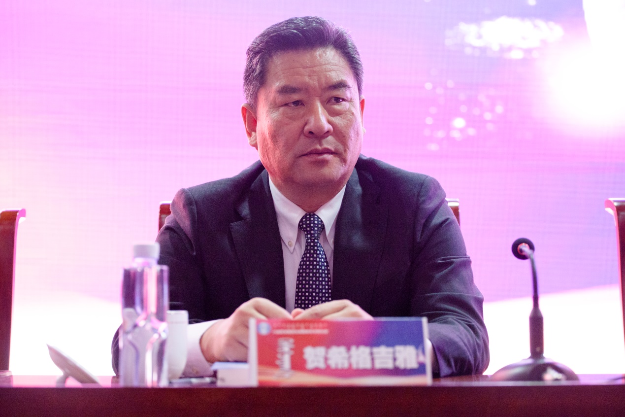 內蒙古自治區人大常委會副主任吳團英作講話,中國民族語文翻譯局副局長李旭練和內蒙古自治區民委副主任、八省區蒙古語文工作協作小組辦公室副主任薩楚日勒圖分別致詞。我校校長格日樂圖以《砥礪奮進、開創未來,書寫蒙古語翻譯發展新篇章》為題做了主旨講話。格校長首先代表學校對與會專家學者和廣大從業人員表示了歡迎,接著向大會介紹了我校漢蒙翻譯學科建設情況、師資隊伍以及所取得成績。格校長還意味深長地談到了翻譯在語言交流、文化交流、民族團結、新時代文化建設中的重要作用,又談到了蒙古語翻譯事業的光輝歷史。隨后舉行了我校翻譯學院成立揭牌儀式,由內蒙古自治區政協副主席羅志虎和我校黨委書記孫國權揭牌。