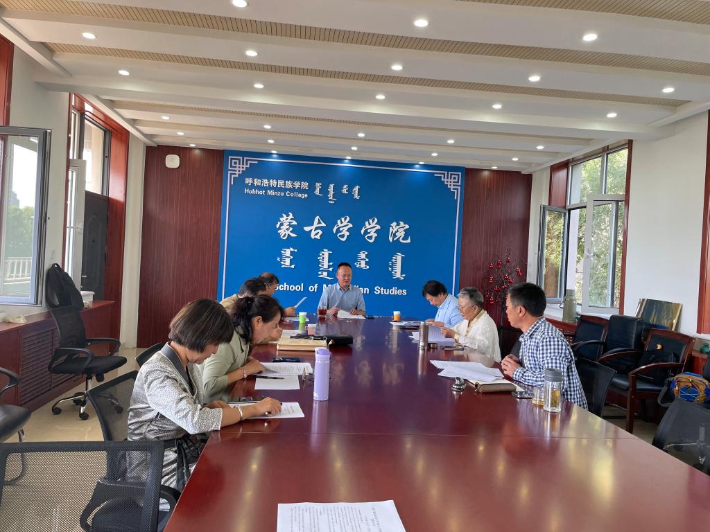 為科學(xué)制定2022級本專科人才培養(yǎng)方案,有效提升本專科人才培養(yǎng)質(zhì)量,蒙古學(xué)學(xué)院(翻譯學(xué)學(xué)院)于9月2日在崇正樓316會(huì)議室召開了2022級本專科人才培養(yǎng)方案論證會(huì),特別邀請內(nèi)蒙古大學(xué)蒙古學(xué)學(xué)院副院長額爾敦哈達(dá)教授和圖門吉日嘎拉教授及校內(nèi)三名專家參加此次論證會(huì)。蒙古學(xué)學(xué)院(翻譯學(xué)學(xué)院)院長王福清、副院長額日德木圖、院辦主任阿力坦斯那嘎以及各專業(yè)負(fù)責(zé)人參加了此次會(huì)議。會(huì)議由王福清院長主持。