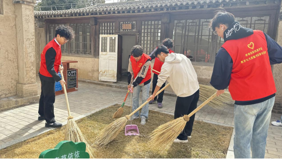 支部活動結束后,志愿者們領取工具,有序地進行打掃故居里亭、清掃庭院落葉等一系列工作。