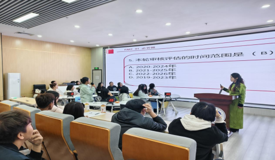 為深化本科教育教學審核評估知識學習成效,激勵廣大同學發揮主人翁精神,以飽滿的熱情和充分的準備迎接審核評估工作,10月30日,學院在學校鑄牢中華民族共同體意識教育館1樓舉辦本科教育教學審核評估知識競賽決賽,從筆試中脫穎而出的8支隊伍共30名選手參賽。學院輔導員姚加鵬及學生代表150余人現場觀看了比賽。