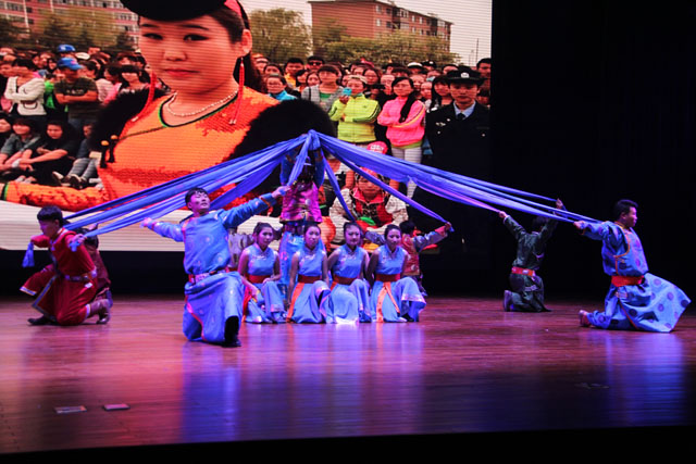 ??10月27日晚,由學院團委、學生聯合會舉辦,內蒙古天堂草原音樂網全程協助支持的“青春中國夢”大學生文藝匯演暨第五屆“塔林都樂”杯民族舞蹈大賽在烏力格爾藝術宮舉行。賀希格吉雅副院長到場觀看了演出,并對演員們的悉心準備與精彩表演做了充分肯定。