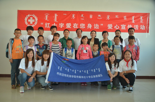 ??2013年9月3日上午,在傳媒系團總支的帶領下,傳媒系紅十字救援隊到呼和浩特市蒙古族學校,開展了關愛特殊群體兒童活動,內蒙古電視臺蒙語衛視等媒體對此次活動做了專題報道。
