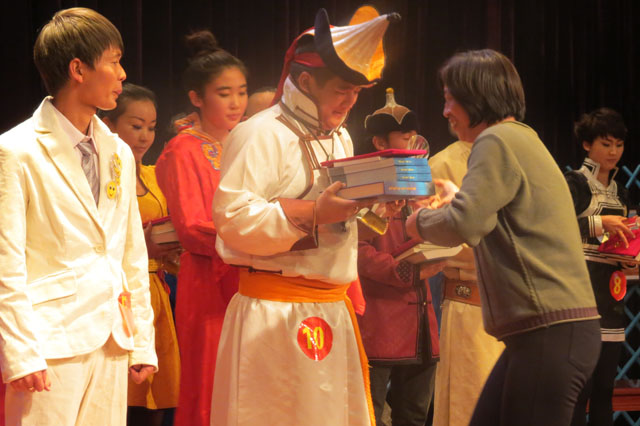 ??本次比賽采取模擬主持、知識問答、才藝表演等形式進行。其中,知識問答環(huán)節(jié)以播音與主持常識和蒙古歷史文化知識為主,考察了參賽選手們對知識的掌握以及反應(yīng)能力。比賽歷時2個多小時,進入總決賽的12名選手用精彩的表演贏得了觀眾們的陣陣掌聲和喝彩。經(jīng)過激烈角逐,專業(yè)組2013級播音主持班那日格勒獲一等獎,2012級播音主持班娜荷芽、2012級播音主持班畢力格巴特爾獲二等獎,2013級播音主持班額爾敦巴特爾、2013級播音主持班熱西尼瑪、2011級播音主持一班烏日古木拉獲三等獎;非專業(yè)組教育系伊日騰其獲一等獎,傳媒系2012級新聞學(xué)班阿拉坦巴根、法律系哈斯牧仁獲二等獎,蒙古語言文學(xué)系登金巴特爾、管理系那仁滿都呼、外語系烏日罕獲三等獎;傳媒系海日等九名選手獲得優(yōu)秀獎。