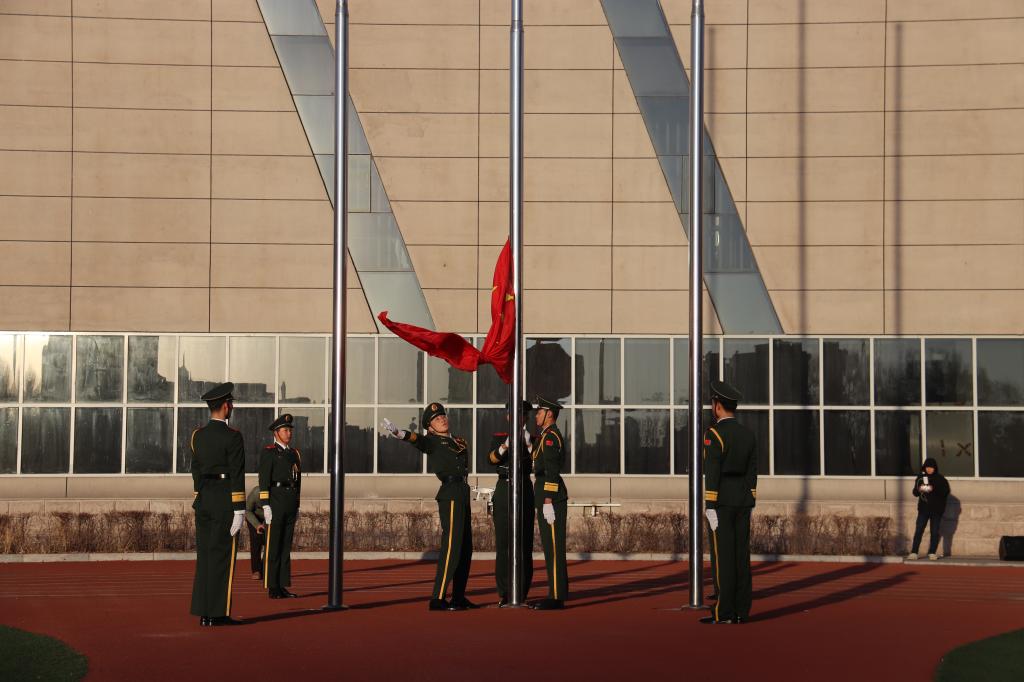 為弘揚愛國主義精神,培養學生愛國、愛黨、愛人民的崇高情懷,3月11日早晨,學校團委組織全校2000多名師生在體育場開展了升旗儀式活動。 早上7時30分,操場旭日東升。我校國旗隊邁著整齊的步伐進入會場舉行升旗儀式,現場師生行注目禮,國旗隊隊員目光堅定,身姿挺拔,國歌奏響,鮮艷的五星紅旗冉冉升起。隨后,音樂系70名學生身穿民族服裝在國旗下唱響了《我和我的祖國》,學生們用嘹亮的歌聲表達了對偉大祖國無限深情。此次升旗儀式進一步增強了廣大師生的愛國主義情懷,從內心深處接受了一次精神上的洗禮。