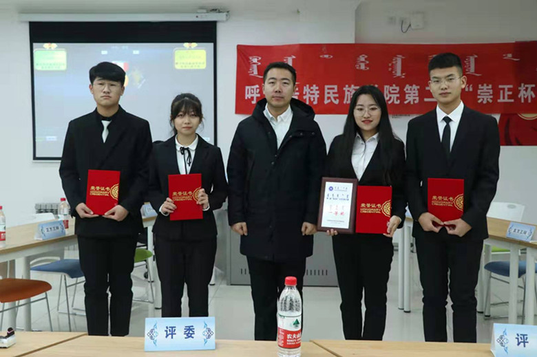 為進一步加強校園文化建設,豐富校園文化生活,結合“不忘初心、牢記使命”主題教育,由校團委主辦,辯論社承辦的呼和浩特民族學院第二屆“崇正杯”大學生辯論賽決賽于12月20日在鉛筆樓三樓報告廳成功舉辦。辯論賽邀請到法學院團總支書記姜鵬、團委辦公室負責人鄭廣昕、學生工作處額日合木三位老師擔任比賽評委。