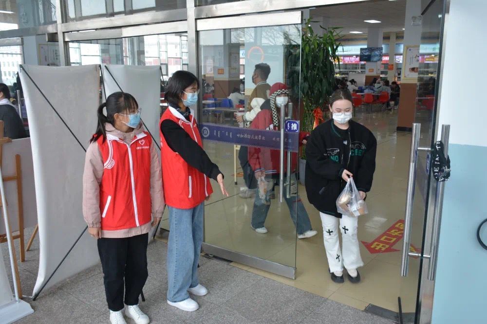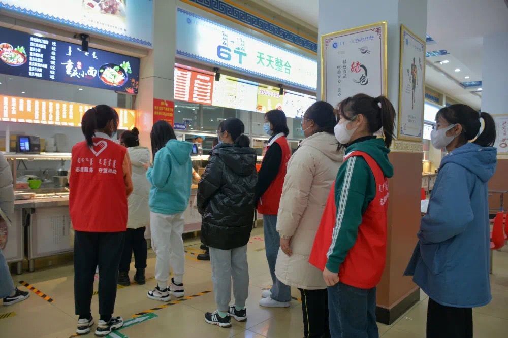 志愿者們每天定點開展志愿服務(wù)工作。提醒用餐師生佩戴好口罩有序進餐廳,保持間隔距離,以實際行動為廣大師生營造了良好的就餐環(huán)境。